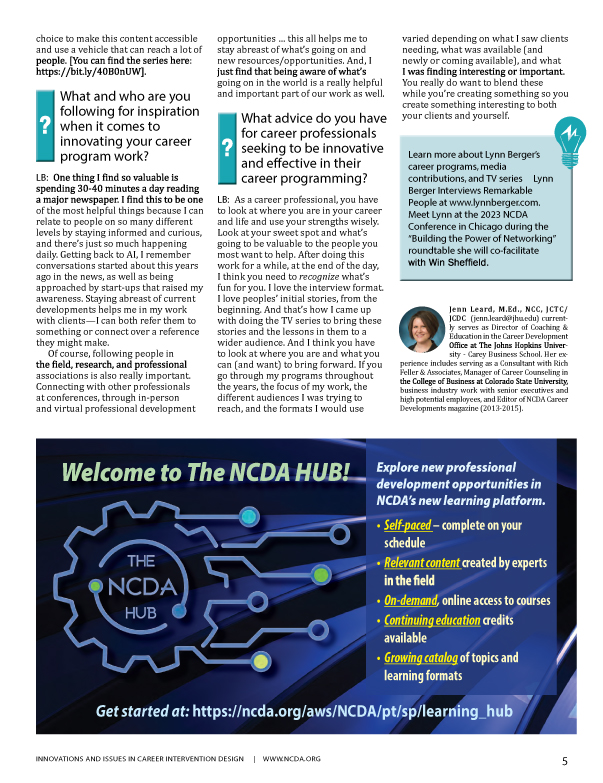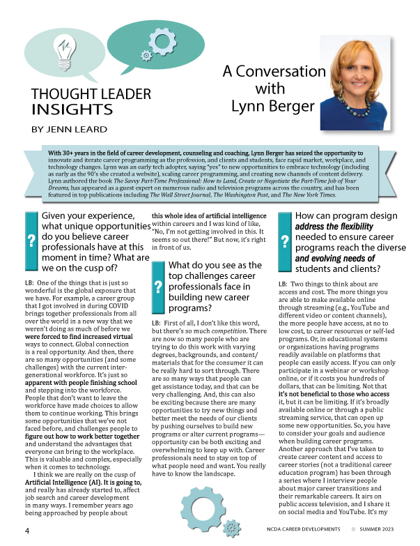 Lynn Berger was featured in NCDA magazine in this article about Thought Leaders.