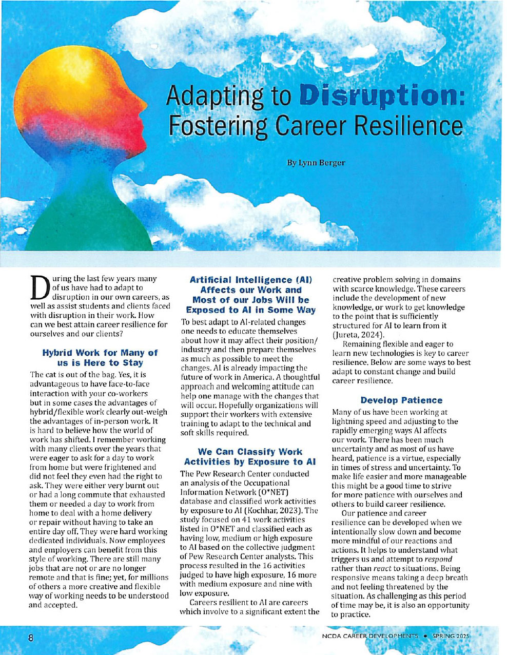 The National Career Development Association Career Development magazine Spring 2025: “Adapting to disruption fostering career resilience.”